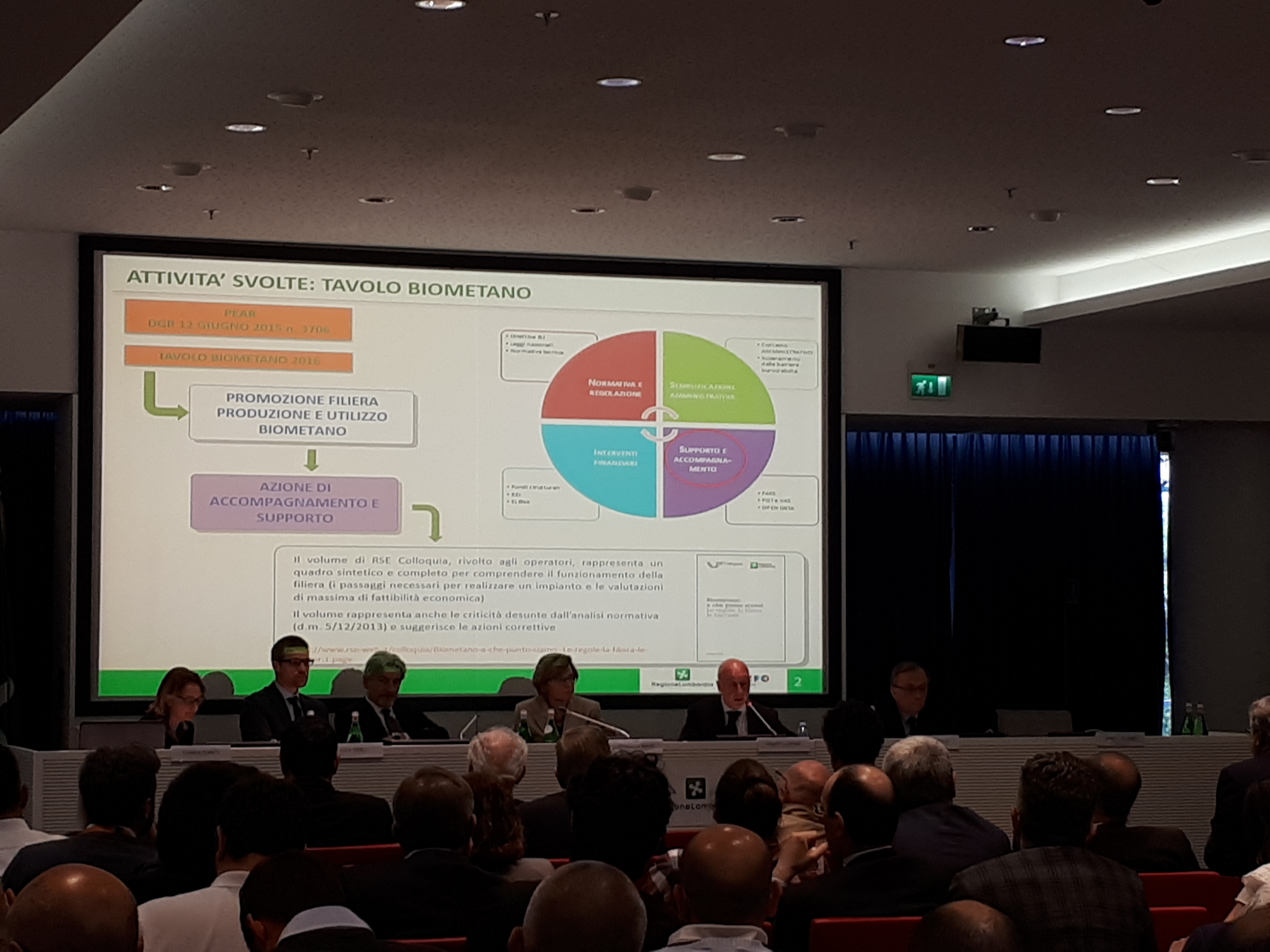 Roberto Canobio della Regione ha fatto il punto sulle filiere del biometano e sul quadro normativo attuale, mentre Luigi Mazzocchi di RSE ha presentato alcuni casi di investimento in impianti di produzione di biometano, nuovi o come riconversione di impianti a biogas esistenti. Daniele Colombo del Cluster Lombardo Chimica verde ha illustrato la “Vanguard Initiative”, che aggrega 29 regioni europee su progetti di innovazione, fra cui lo sfruttamento del biometano liquefatto.