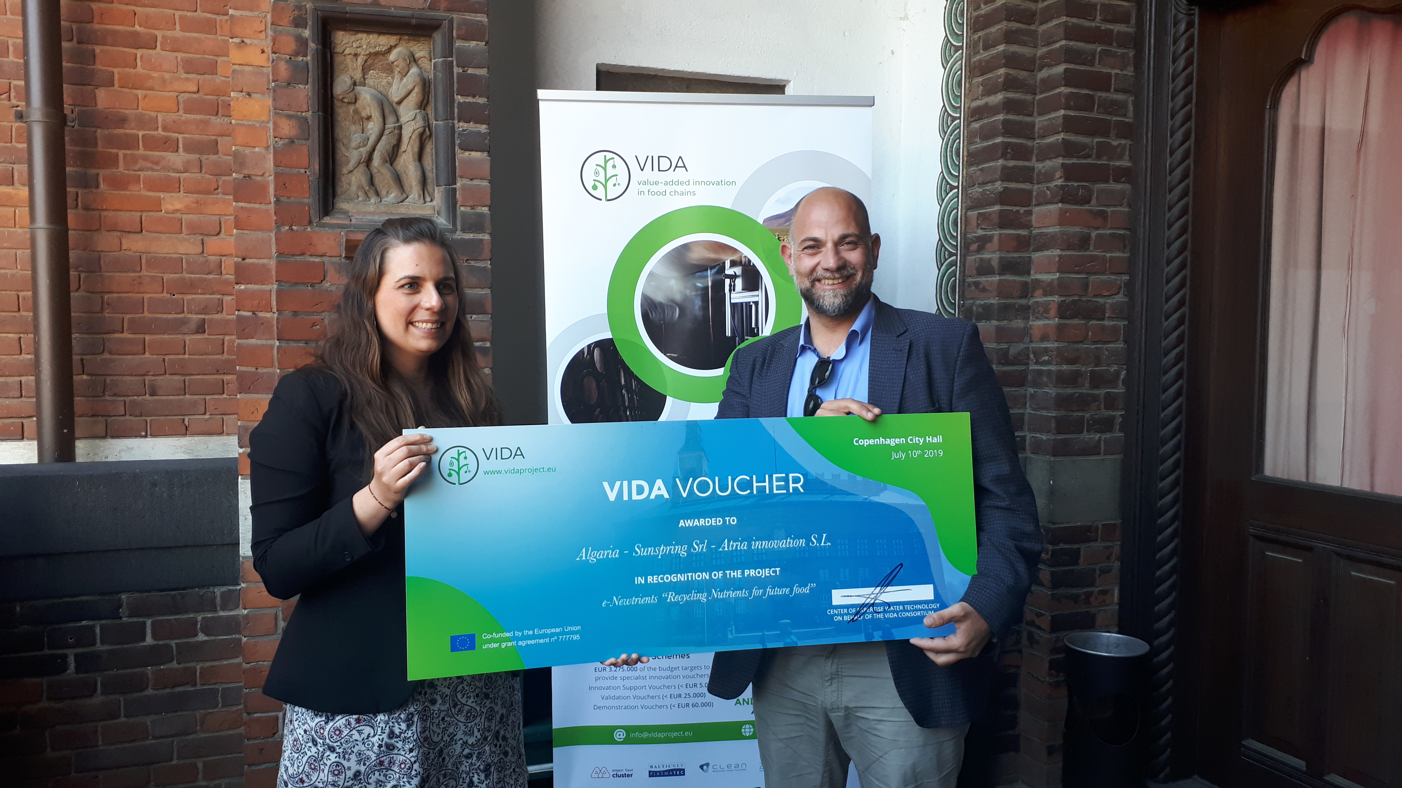 LE2C e i partner del progetto VIDA si sono riuniti a Copenhagen insieme ai vincitori della prima call dei Demonstration Voucher. Otto in tutto i voucher assegnati ai progetti in partenariato che mirano a migliorare l'uso e l'efficienza di acqua, cibo, energia e Tecnologie Abilitanti (KETs). Tra le aziende vincitrici due le italiane, associate a LE2C: la capofila Algaria e Sunspring, che insieme all'azienda spagnola Atria Innovation hanno presentato un progetto di recupero di nutrienti da sottoprodotti dell'industria alimentare.